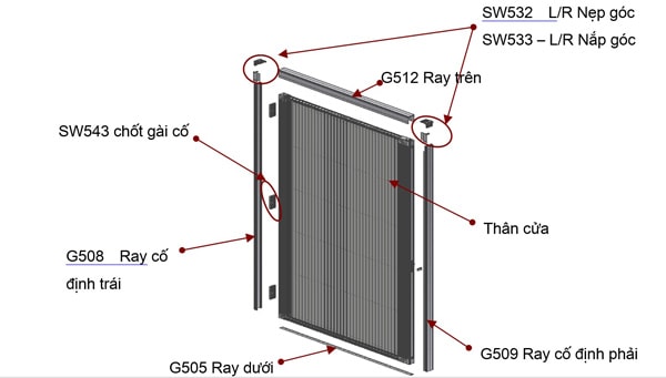 Cấu tạo cửa lưới chống muỗi dạng xếp